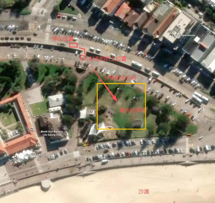 位置图示还原, 悉尼邦迪海滩Bondi Beach枪击事件