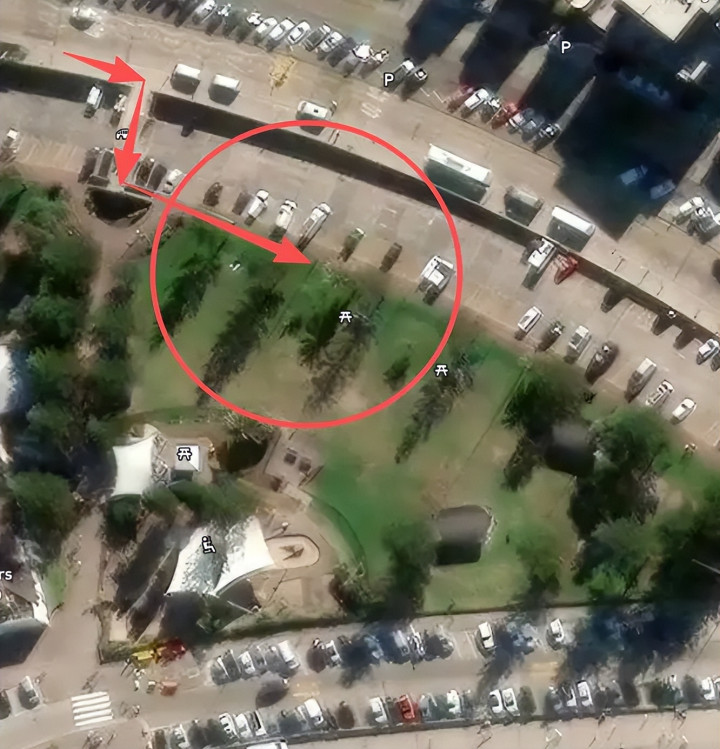 再说明一下,这两个位置示意,是较近的草坪这里,不是远处的沙滩位置。当然袭击发生后,沙滩上也有大量的人群马上要转移。
